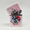 White Zippo lighter with Ta2 pink background, swallow, heart and words printed on front of zippo.