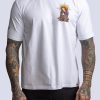 White cotton t-shirt with Ta2 saint praying design on pocket region. Ta2 logo design on right sleeve. Double headed red eagle tag bottom left.
